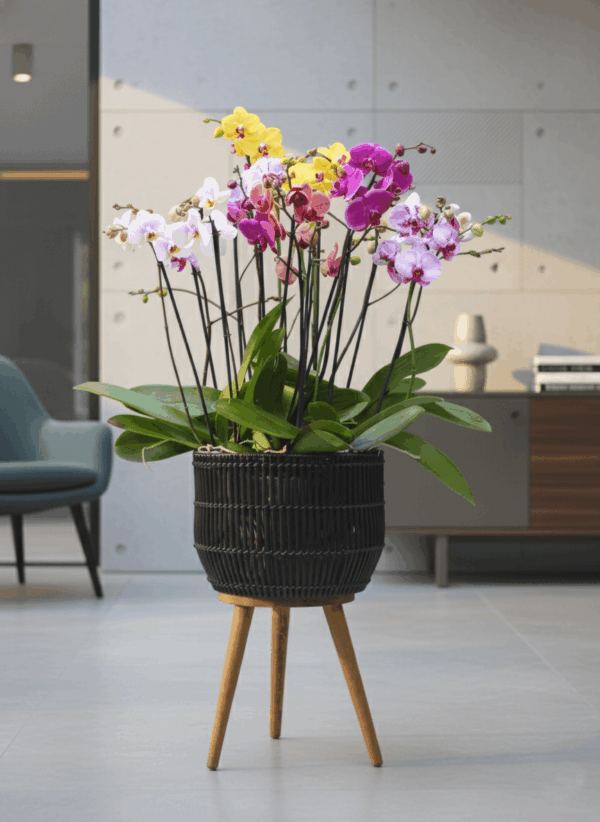 - Diseño en cerámica con orquídeas phalaenopsis cuenta con 7 plantas = 14 varas florales