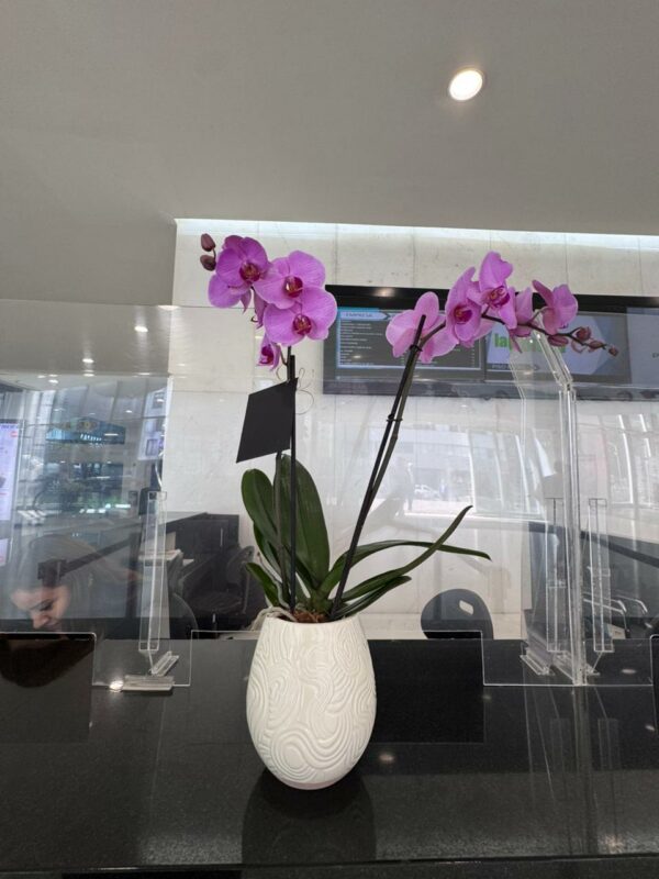 Nuestras orquídeas vienen de nuestros vivero en perfectas condiciones, cada una de ellas tiene el cuidado necesario para preservar las raíces, flores y tallos. Te garantizamos que con los debidos cuidados y riego está planta podrá alegrar el espacio de tu ser querido.