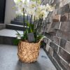 - Diseño en cerámica color beige con 5 plantas de orquídea Phalaenopsis = 10 varas florales.