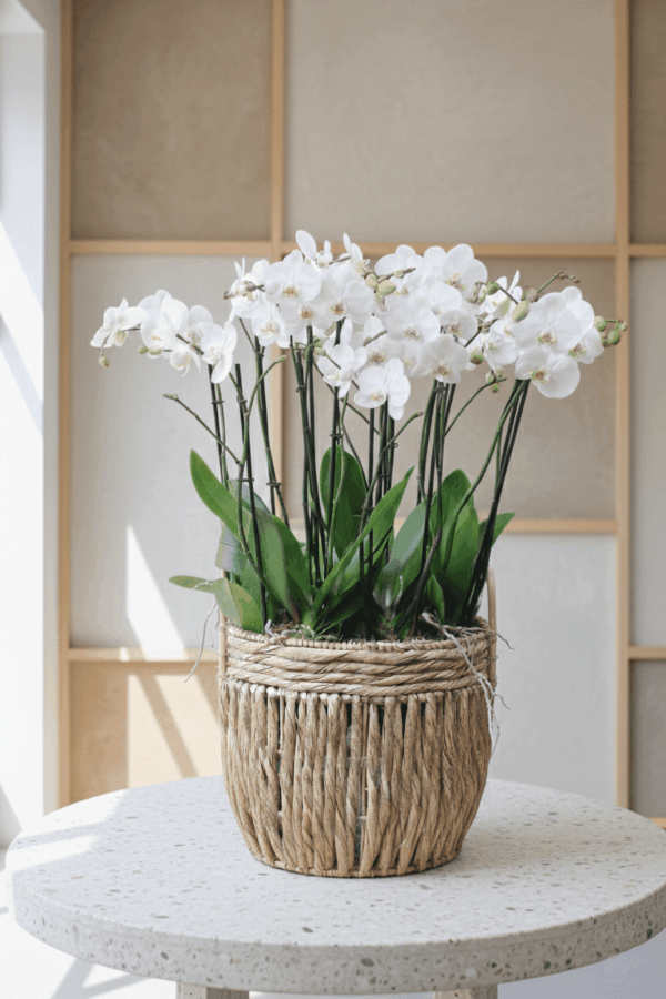 Regalo para un cumpleaños especial, envía esta orquídea a quien estimas, lo agradecerá con el corazón, regala orquídeas que duran muchos años, no regales flores cortadas. Un regalo de larga vida. ¿Sabías que una orquídea puede durar más de 10 años? Canasta de mimbre y bambú.