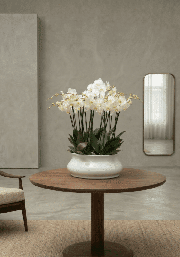Un bello conjunto de orquídeas en base metálica en negro y dorado, contiene 10 plantas de orquídea Phalaenopsis = 20 varas de flores, un diseño encantador, minimalista, exuberante y gigante, sorprende realmente a alguien con este diseño. Arreglos Florales para Cumpleaños