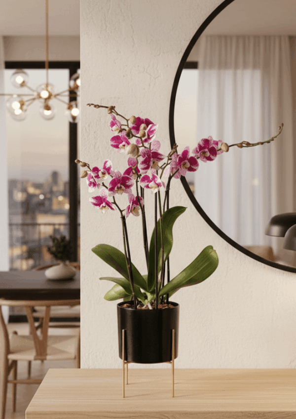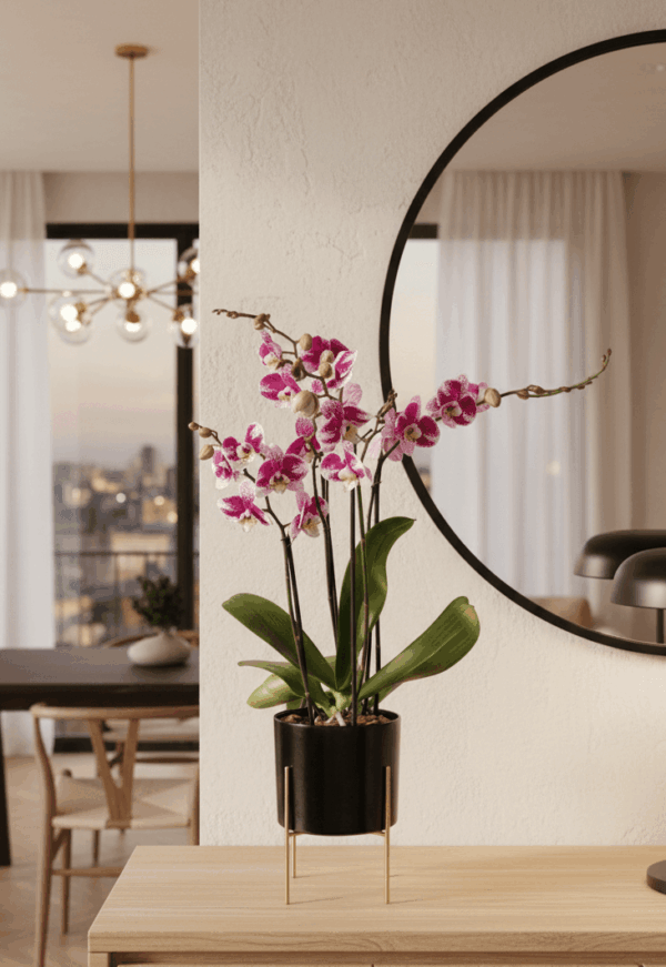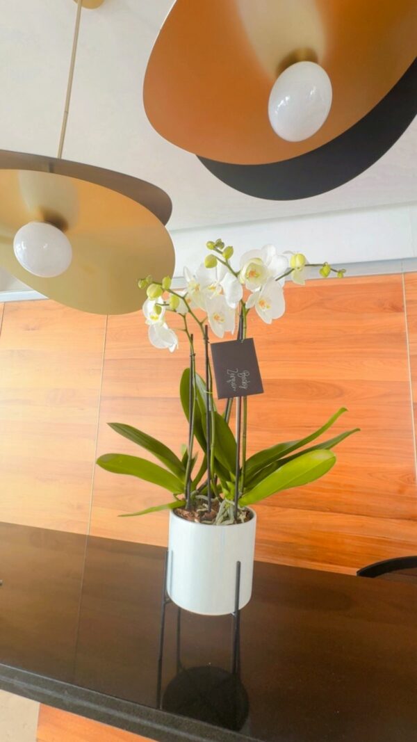 - Incluye 2 plantas de orquídea phalaenopsis = 4 varas florales