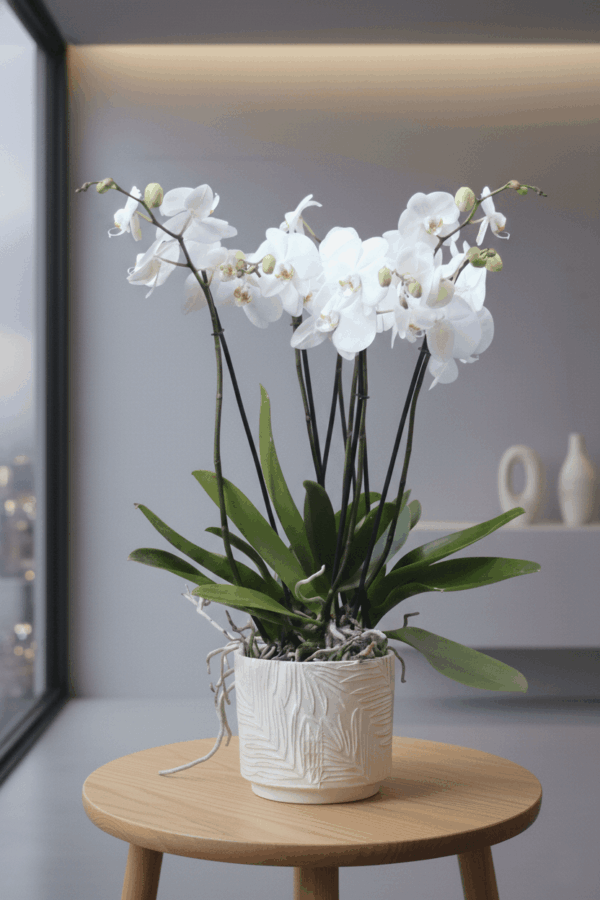 Un moderno y bello presente para alguien especial, lo tenemos aquí para ella. Un regalo para cumpleaños de amiga. Un bello arreglo de orquídea Phalaenopsis armonizará su hogar u oficina, un símbolo de fraternidad. Todas nuestras plantas son de doble vara, ninguna orquídea es igual a otra, nos esmeramos por poner la mejor en caso de no tener el color que desean