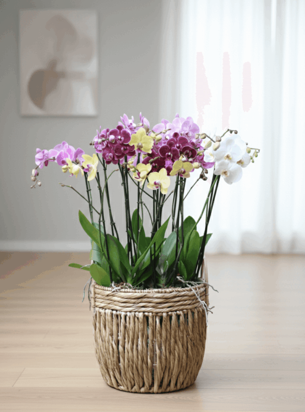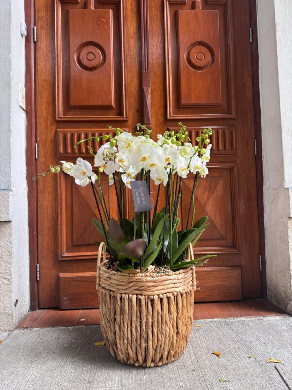 Regalo para un cumpleaños especial, envía esta orquídea a quien estimas, lo agradecerá con el corazón, regala orquídeas que duran muchos años, no regales flores cortadas. Un regalo de larga vida. ¿Sabías que una orquídea puede durar más de 10 años? Canasta de mimbre y bambú.